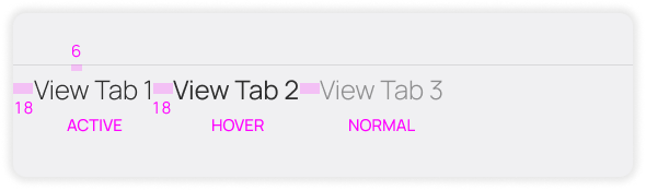 It is positioned at the top of Windows for convenient access. Each destination is represented by a text label, and optional icon. Do not color these, as they should always use the foreground/text color.